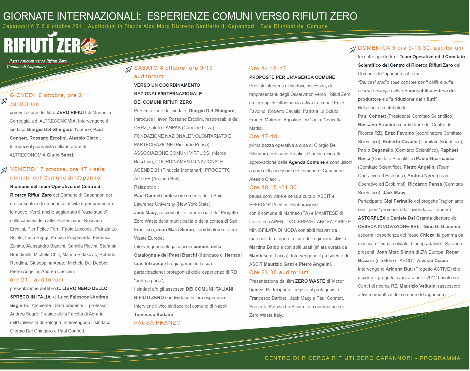 TUTTI GLI OSPITI INTERNAZIONALI DELLE “GIORNATE COMUNI VERSO RIFIUTI ZERO DI CAPANNORI” 6-7-8-9 OTTOBRE