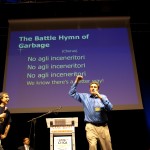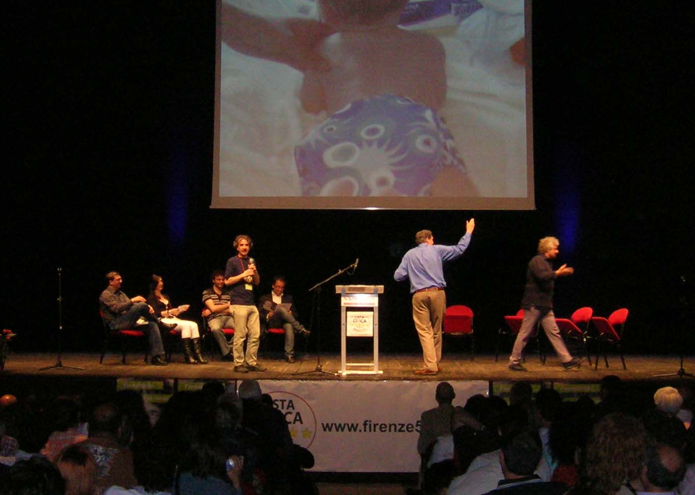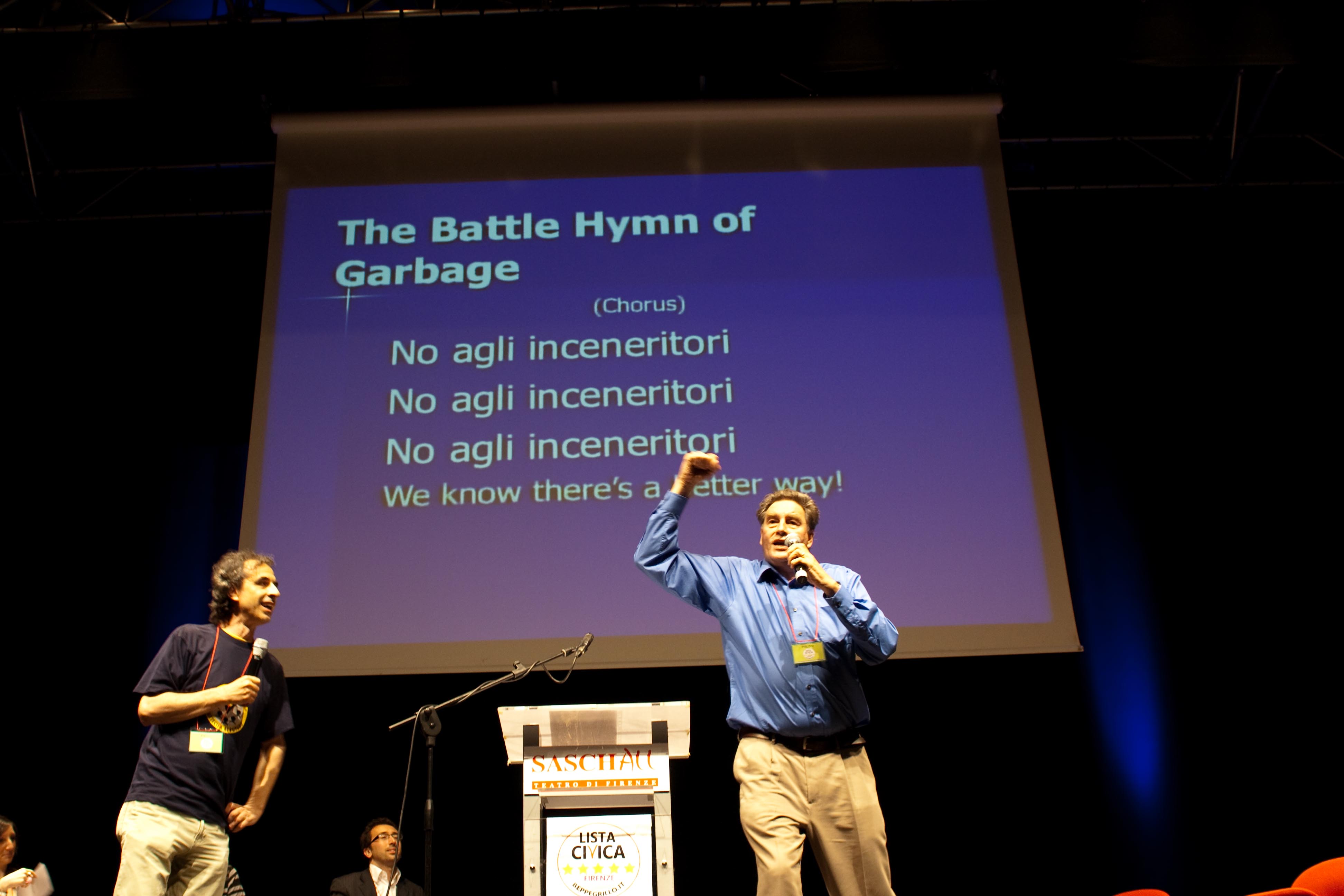 Paul Connett illustra le varie e-mail di soliderietà con Giorgio Del Ghingaro provenute da molte parti del mondo